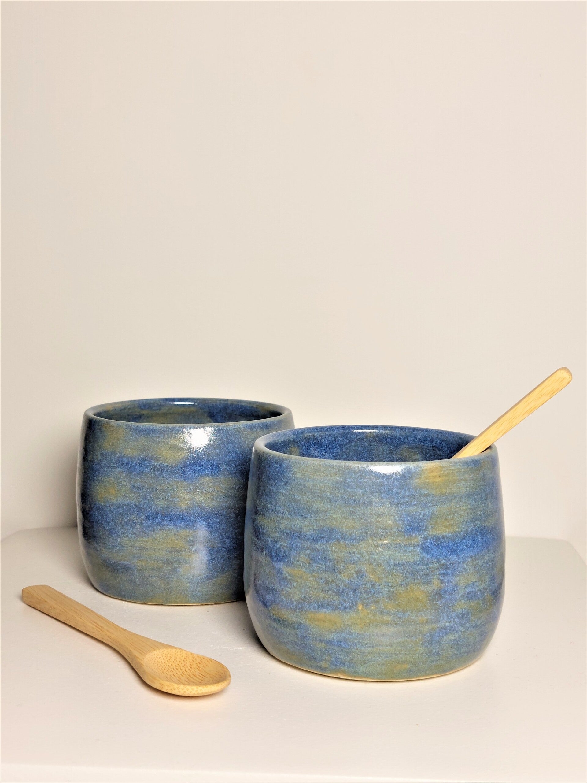 Onze Blue Jar is een veelzijdige en stijlvolle oplossing voor het serveren van suiker, nootjes of andere lekkernijen.