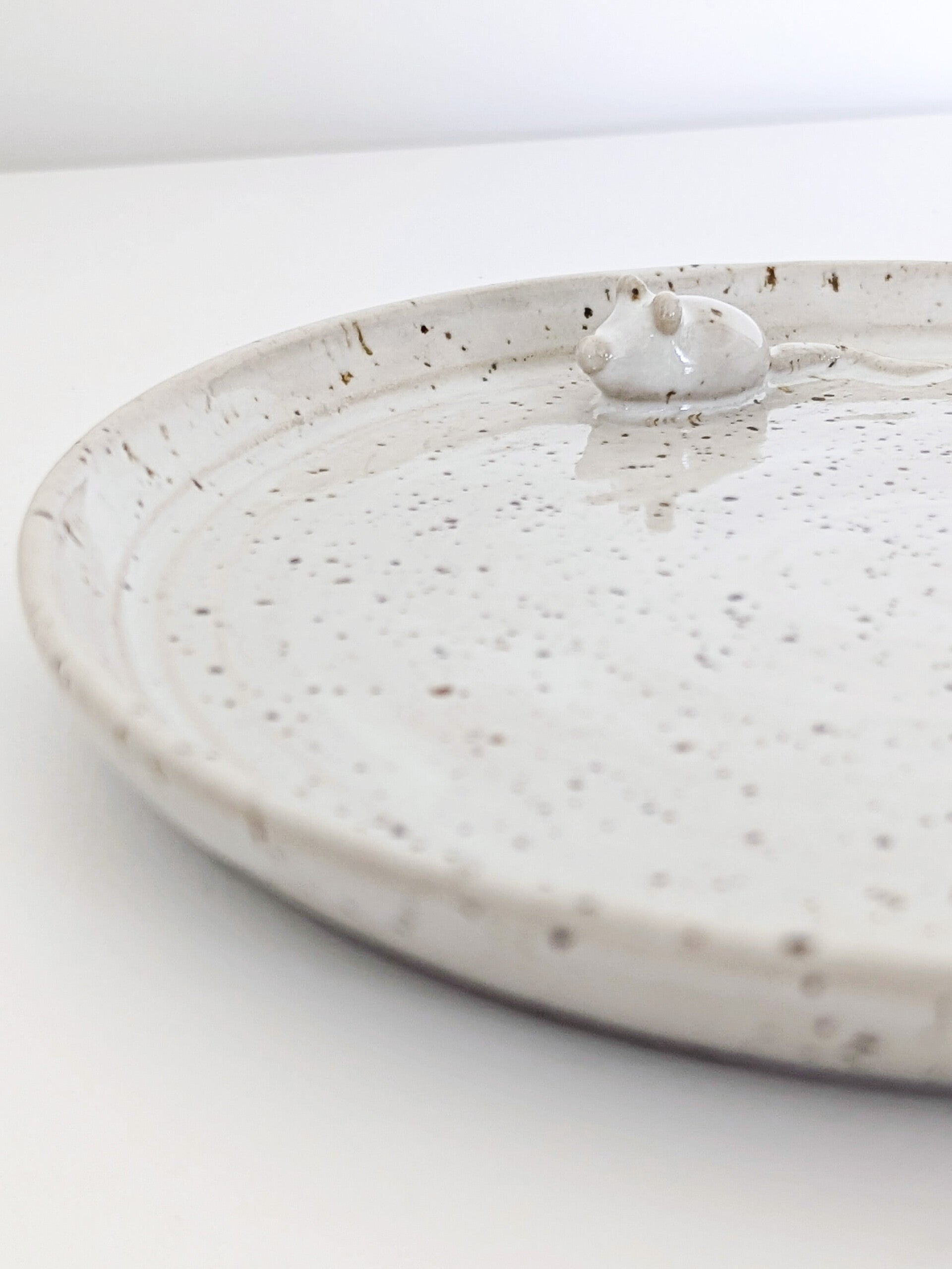 Hoe leuk is dit bordje om je favoriete kaasjes op te serveren? Het kleine muisje bovenop geeft net dat extra gezellige detail, waardoor dit bordje helemaal af is. Perfect voor een borrel of als vrolijke toevoeging aan je servies.